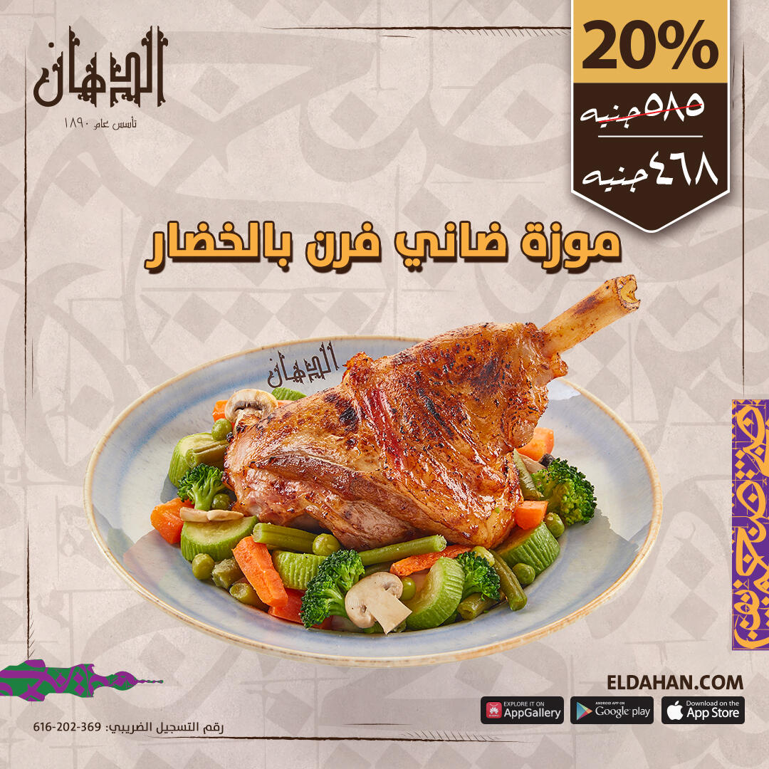 لوح كتف ضاني متبل بخلطه الدهان السريه مطهو ببطىء في الفرن تقدم مع الشعريه و الكاجو
